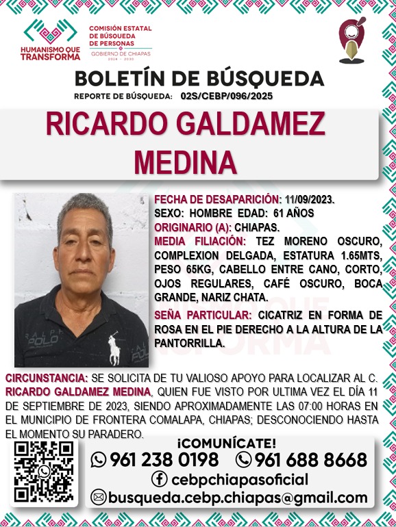 Fuente: Comision Estatal de B煤squeda de Personas | Tel茅fono: (961) 688 86 68 | Correo: chiapascebp@gmail.com
